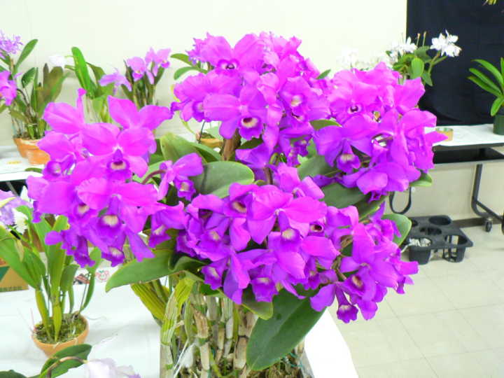 | 2008年3月23日 場所 平野区画整理記念会館 春の彼岸も過ぎ、暖かい日になりました。 この日は大株市ということで、午前10時からの開催でした。 始めに、田中会長から、先日開催された「咲くやこの花館」での 第34回洋ラン展が盛会に開催された報告がありました。 続いて、岩崎さん・黒田さんペアによる歯切れのよいリードで株市が始まりました。 本会の特徴である数多くのカトレヤ交配種の有名株に加えて、 今回はデンドロビウムの原種もたくさん出品され、にぎやかな株市となりました。 |