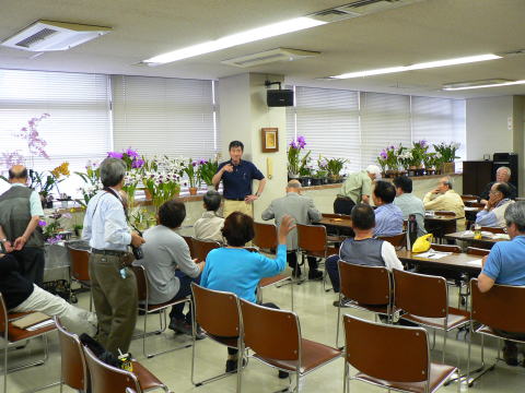 | 2010年5月23日 場所:平野区画整理記念会館 今回の公演会は名誉会長の田中昭子さんのファレノプシスの管理でしたが、 急遽体調不慮のため、ピンチヒッターで高橋進氏が担当しました 展示株の説明も子安健司氏が担当で、また新しい目線での説明のやり方で楽しい会になったように思います。 |