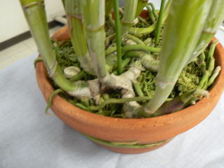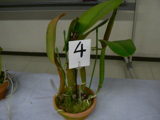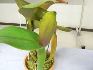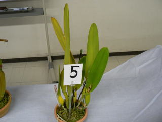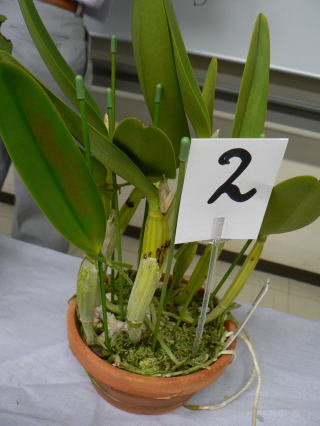 | 2012年8月26日 場所:平野区画整理記念会館 今回はいつも立派な株を展示していただいている子安健司氏による展示株の詳しい解説をしていただき、 出品者にも栽培方法や苦労話しなどを交えながら個々の栽培方法を解説していただきました。 また、カトレヤ系原種の株を並べて品種名を当てるゲームを行い皆さん楽しんでおられたようです。 |