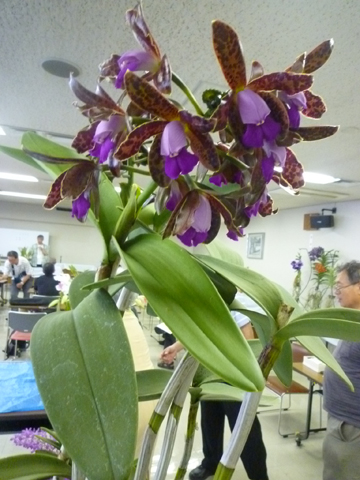 | 平成29年6月25日 場所:平野区画整理記念会館 今月の例会は、「私のらん栽培の歴史」と言うタイトルで、山本賀津夫氏に講演していただきました。 山本氏が大事にされているラン株の入手時のエピソード、栽培の苦労話など、説明していただきました。 |